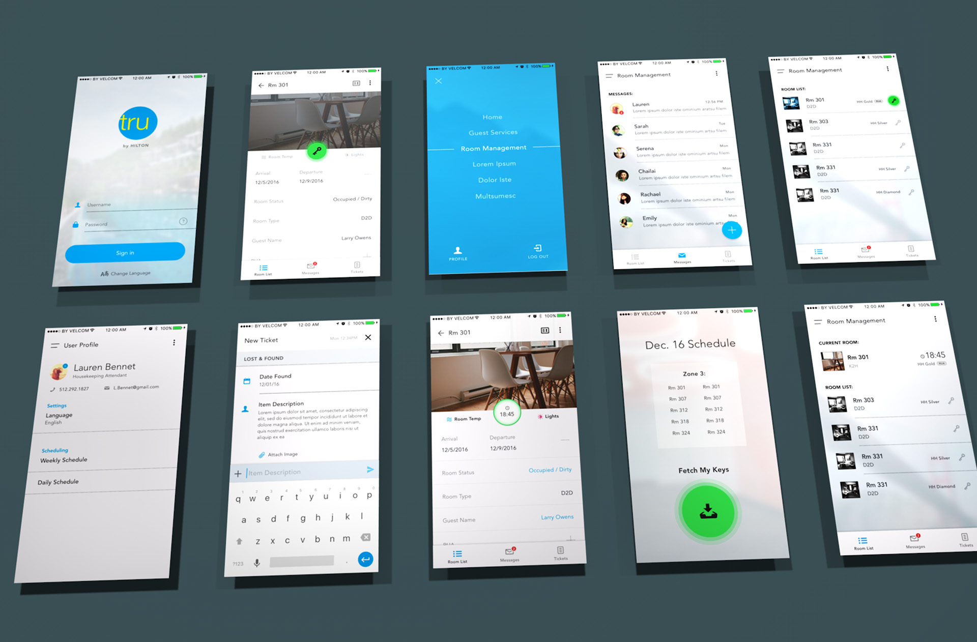 Design a conceptual mobile solution for hotel housekeeping and maintenance hotel employees. The goal is to showcase to leadership and stakeholders how the existing system can translate to an improved, on-brand mobile experience.